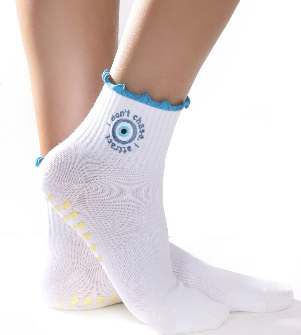 Tap into your power with Manifest Grip, the sock that does more than support your flow — it aligns your energy. Featuring a protective blue evil eye and buttery-soft stretch, these grip socks are made to move with you, not against you.